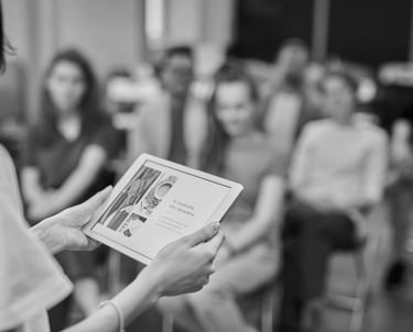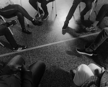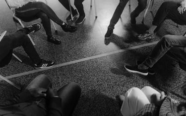 Sessões colaborativas que promovem a troca de experiências e apoio mútuo entre participantes.
